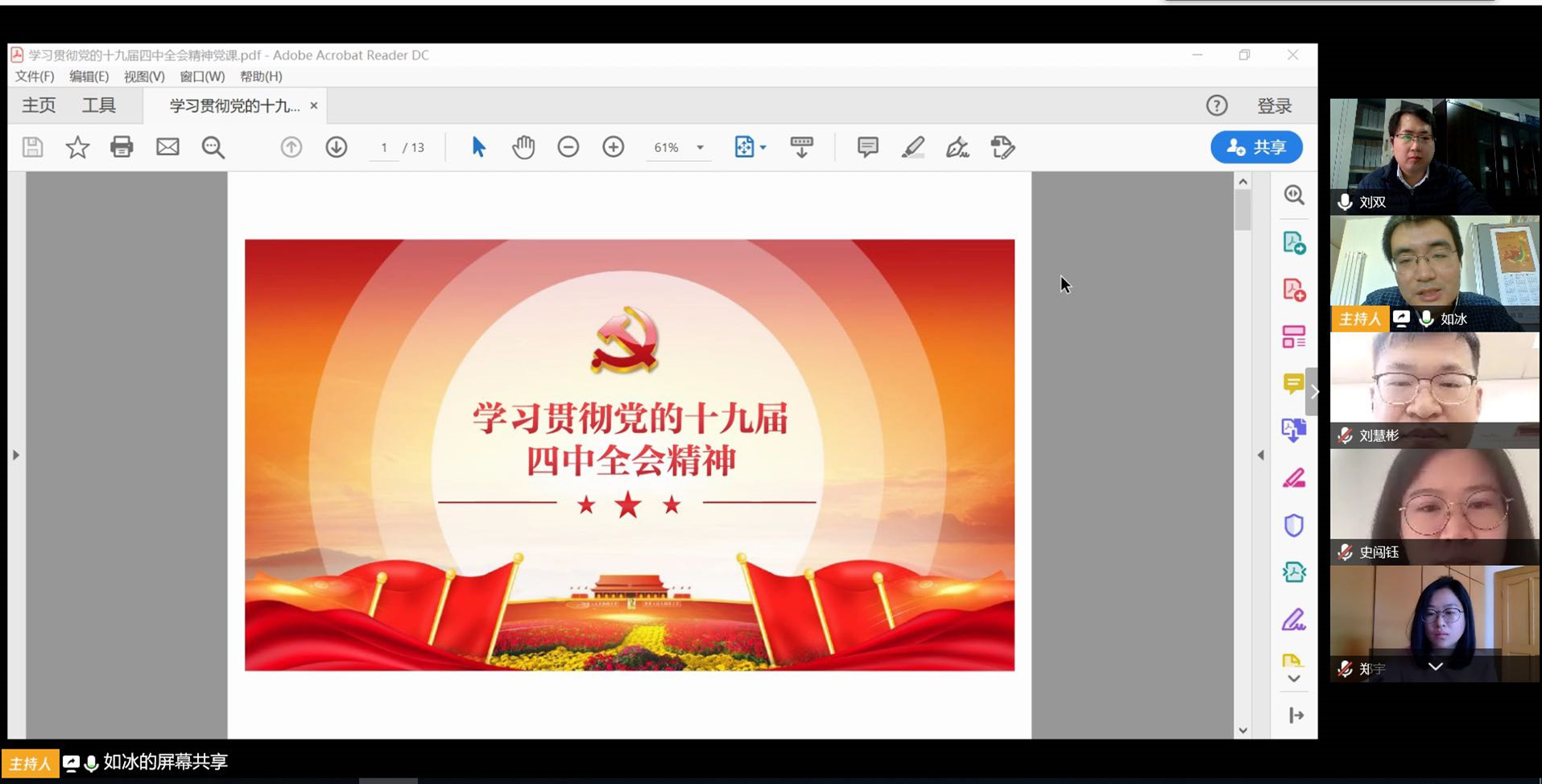 3月12至3月13日,北京建機(jī)院黨委領(lǐng)導(dǎo)班子成員以“學(xué)習(xí)貫徹落實(shí)十九屆四中全會精神,積極穩(wěn)妥有序推進(jìn)北京建機(jī)院混改工作”為主題,圍繞“黨的十九屆四中全會召開背景、意義以及全會提出的堅持和完善中國特色社會主義制度、推進(jìn)國家治理體系和治理能力現(xiàn)代化的總體要求、總體目標(biāo)、重點(diǎn)任務(wù)和重大舉措”等內(nèi)容,采用視頻會形式,深入各基層黨組織開展了宣講,推動全會精神學(xué)習(xí)下基層,營造了濃厚的學(xué)習(xí)貫徹氛圍。