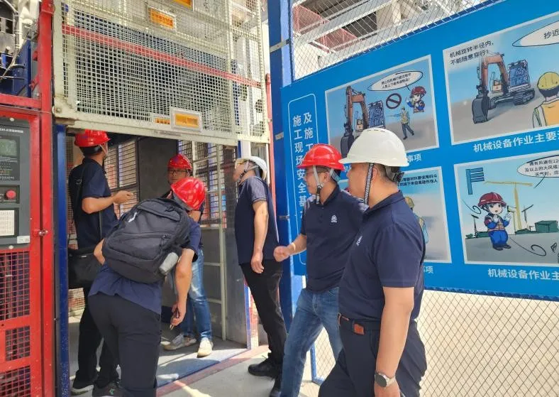 為進(jìn)一步深入落實《公司安全生產(chǎn)治本攻堅三年行動實施方案(2024—2026年)》,夯實安全生產(chǎn)工作基礎(chǔ), 6月27日,北京建機(jī)院黨委書記、董事長兼總經(jīng)理宮劍飛帶隊調(diào)研天津環(huán)湖醫(yī)院項目智能施工升降機(jī)使用情況并檢查安全生產(chǎn)工作。北京建機(jī)院黨委委員、副總經(jīng)理、分管安全負(fù)責(zé)人王春琢參加調(diào)研檢查。