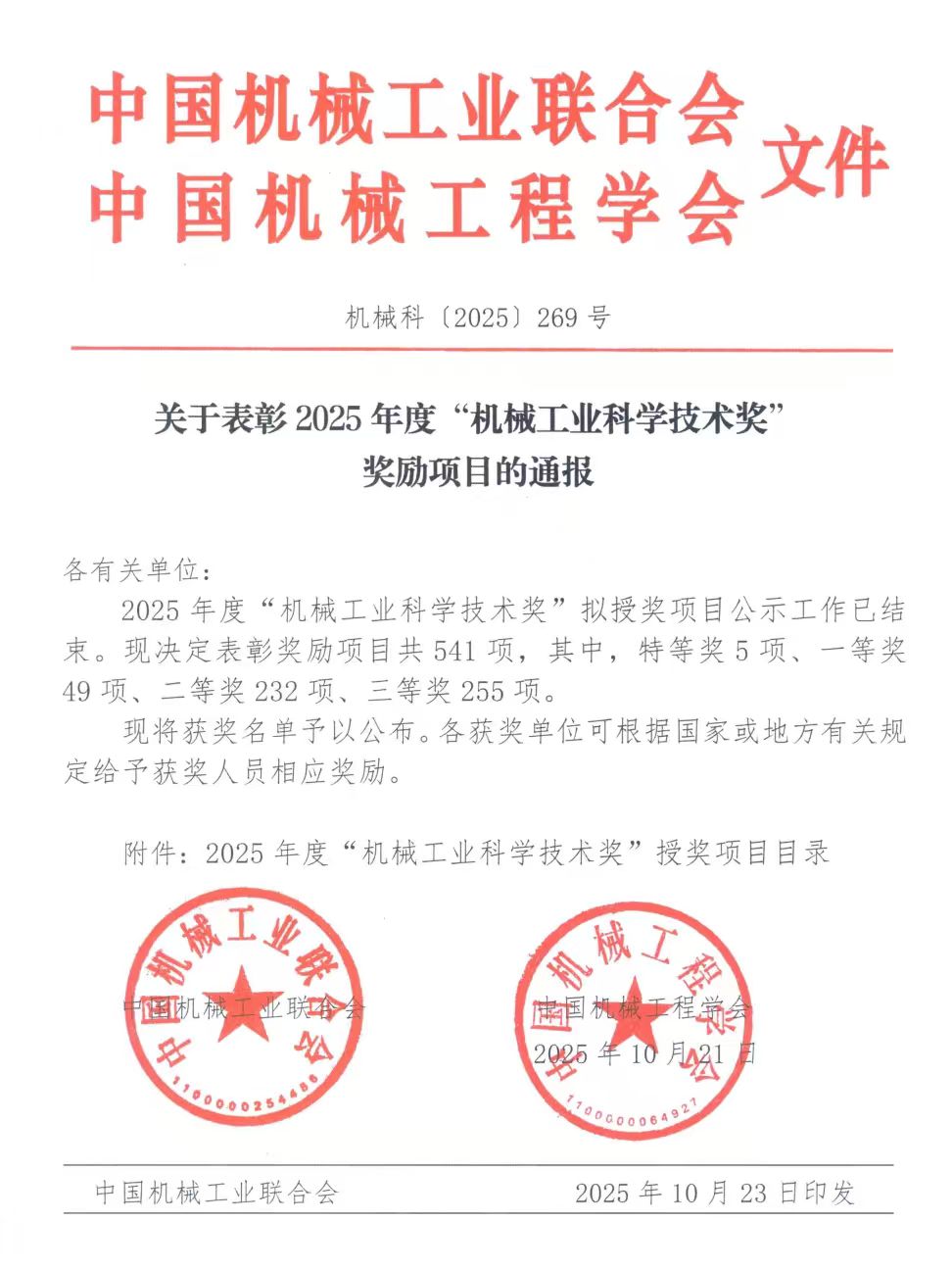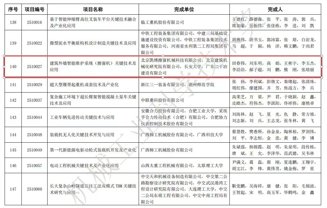凱博擦窗建筑外墻智能維護系統(tǒng)(擦窗機)關鍵技術及應用榮獲2025年度機械工業(yè)科學技術獎(科技進步獎)二等獎